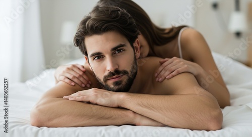 Sensual Couple in Bed: Intimate Portrait of a Man and Woman, Showing Affection and Connection