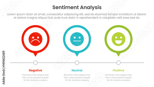 sentiment analysis infographic 3 point with outline circle timeline right direction for slide presentation