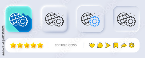 Seo gear line icon. Neumorphic, Flat shadow, 3d buttons. Internet settings sign. Traffic management symbol. Line seo gear icon. Social media icons. Vector