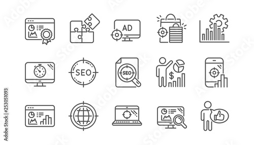Seo line icons. Increase sales, Business strategy and Search optimization. Analytics linear icon set. Vector