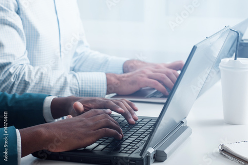 SEO optimization of website. Newest technologies, tools and ways of improving web page. Mixed race office workers