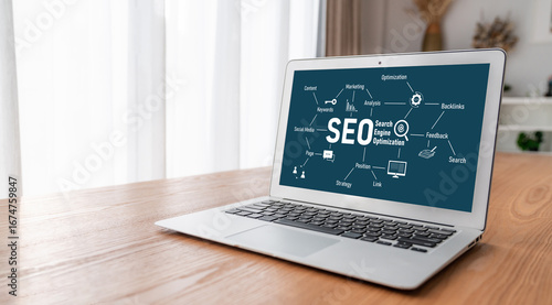 SEO search engine optimization for modish e-commerce and online retail business showing on computer screen