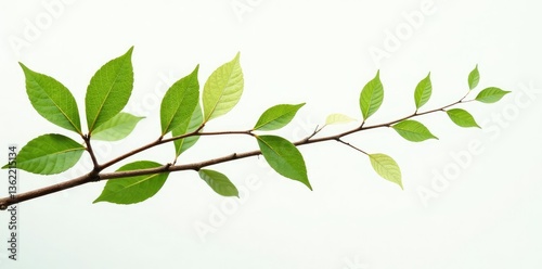 Separate branches on white background with leaves and stems stretching outwards, organic, foliage, abstract
