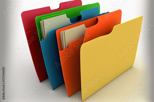 separated folders in various colors on a white backdrop. Generative AI