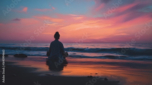 Serene Beach Meditation at Sunset: A Woman's Solitary Practice