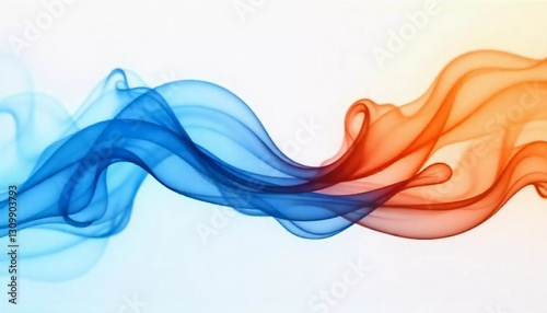 Serene Blue And Fiery Orange Smoke Streams Intertwining In A Graceful Dance On A Bright White Background