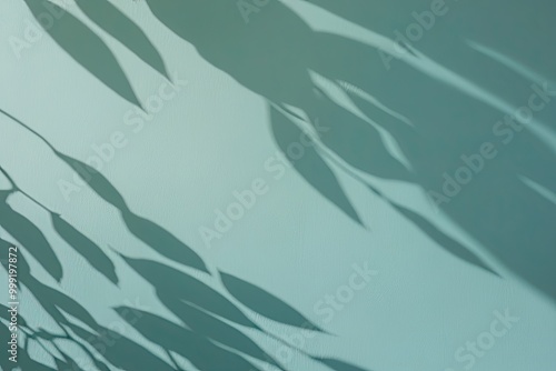 Serene Blue Wall with Gentle Leaf Shadows in Soft Pastel Background