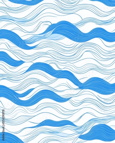 Serene blue waves flowing in a rhythmic pattern against a white background creating a calming abstract design