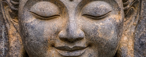 Serene Buddha Face Close-up of a Tranquil Stone Sculpture