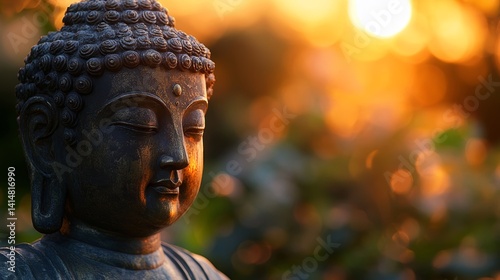 Serene Buddha Statue at Sunset Peaceful Meditation and Enlightenment