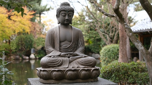 Serene Buddha statue contemplates in peaceful solitude, a popular and captivating image.