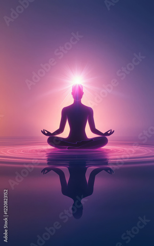 Serene Contemplation: A tranquil figure is gracefully meditating in a state of inner peace and focused reflection. the illustration perfectly captures the moment of mental stillness.