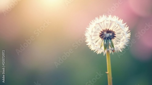 Serene Dandelion Seed Head in Soft Sunset Light, a Symbol of Wishes and Change