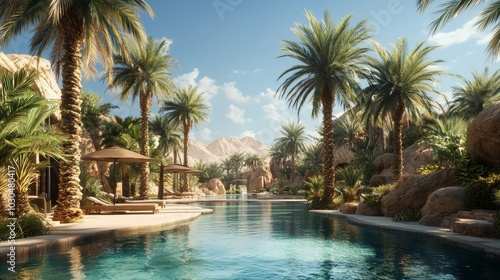 Serene Desert Oasis with Palm Trees and Refreshing Pool Generative AI