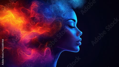 Serene Digital Art: Woman's Profile with Colorful, Abstract Hair