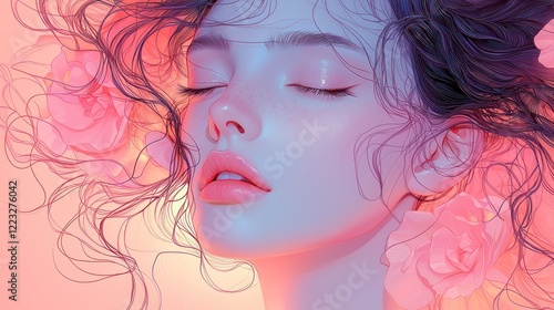 Serene Dreamscape: A Digital Portrait of Tranquility and Feminine Beauty