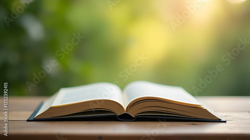 Serene Education: Open Book on Wooden Table - Academic Study Vector