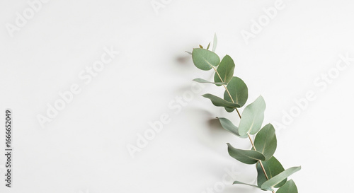 Serene eucalyptus branch with delicate leaves creates a calm, natural backdrop for modern design projects