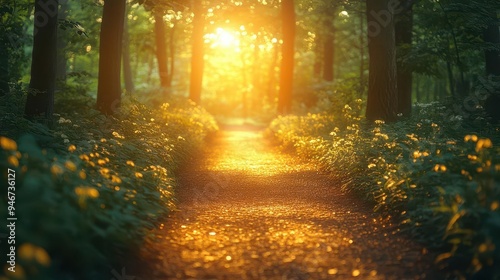 serene forest path bathed in soft filtered sunlight gentle bokeh effect highlights the spiritual atmosphere of a solitary nature walk