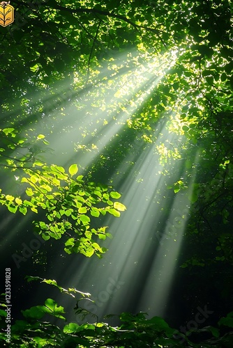 Serene forest trail with sunlight filtering through tall trees symbolizing nature preservation and sustainable tourism