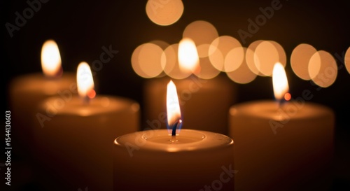Serene Glow of Burning Candles in the Dark: A Peaceful and Reflective Atmosphere