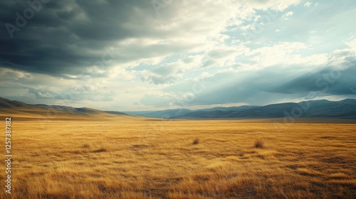 Serene Golden Fields Under Dramatic Sky with Soft Light Rays