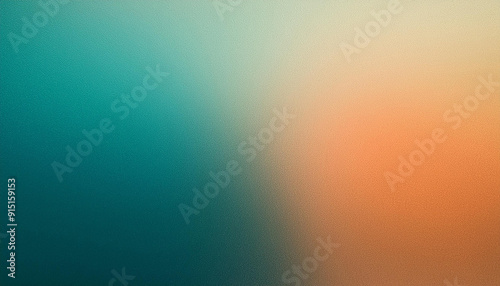 Serene Gradient Horizon. Tranquil Blend of Cool Teal Fading into Warm Sunset Orange, Textured Abstract Backdrop Banner with Copy Space