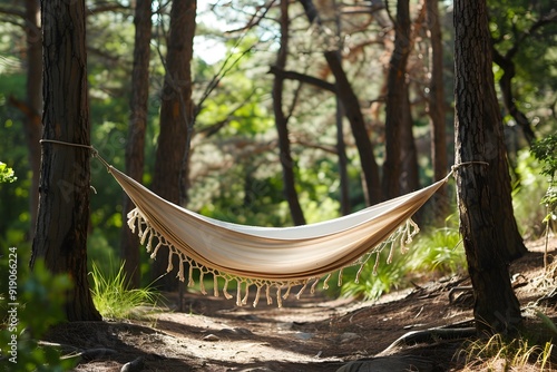 Serene Hammock Nestled Among Trees in a Lush Forest