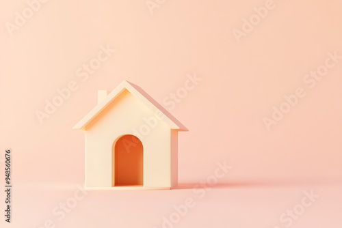 Serene House Icon in Soft Plaster on Coral Background - 3D Render with Peach and Gold Tones
