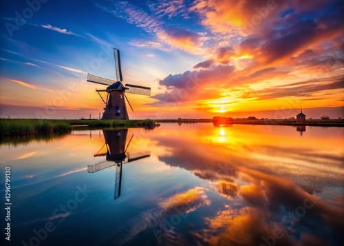 Serene Landscape: Windmill Over Calm Water - Dutch Rural Scene