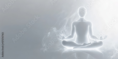Serene Meditation Figure in Ethereal Light with Soft Misty Background