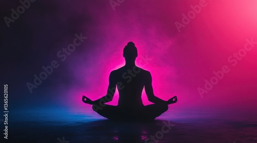 Serene Meditation in Silhouette Against Vibrant Smoke Background for Tranquility and Inner Peace in Wellness and Mindfulness Practices