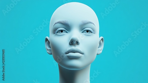 Serene Minimalist Portrait: A 3D Rendered Female Head Against a Turquoise Background