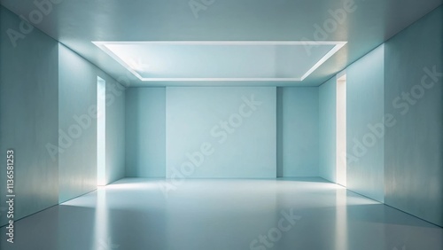 Serene Minimalist Room Interior Design with Soft Blue Walls and Recessed Lighting