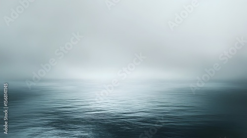 Serene Misty Ocean Surface with Calm Water Reflection and Fog