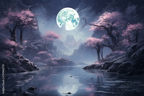 Serene moonlit waterfalls in Fantasy - Generative AI