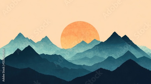 Serene Mountain Landscape with Rising Sun and Gentle Color Palette