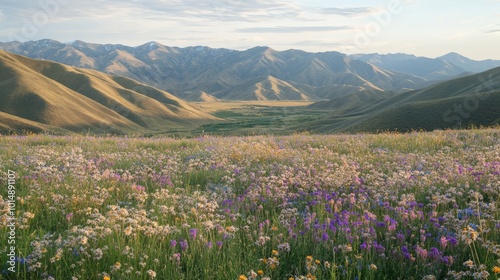 Serene Mountain Meadow in Bloom: An Idyllic Landscape