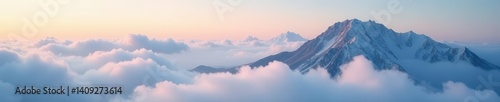 Serene mountain tops shrouded in soft, ethereal clouds , texture, nature