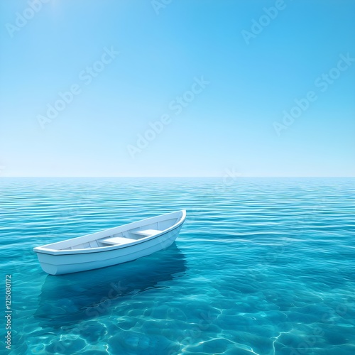 Serene Nautical Scene with White Boat on Calm Azure Water