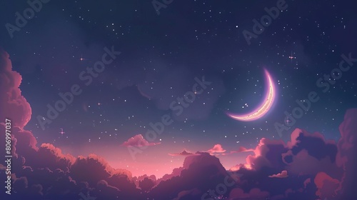 serene night sky with luminous crescent moon glittering stars and soft clouds peaceful celestial landscape