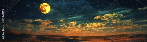 Serene Night Sky with Wispy Clouds, Glowing Moon, and Stars