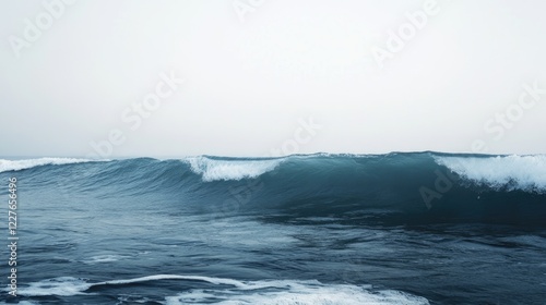 Serene ocean waves against a tranquil sky with a subtle gradient of blue and grey, creating a calming natural landscape backdrop.