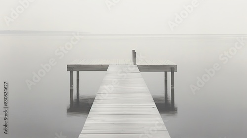 Serene Scene of Nature, Manmade Structures, and Reflection on Calm Waters.