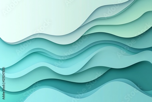 Serene Teal Waves: Layered Papercut Ocean Abstract