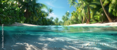 Serene Tropical Paradise - Stunning of a Lush Beach with Crystal Clear Water and Palm Trees
