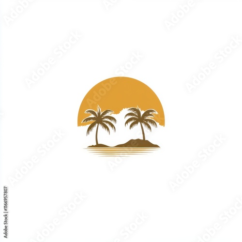 Serene tropical sunset with silhouette palm trees and calm waves.