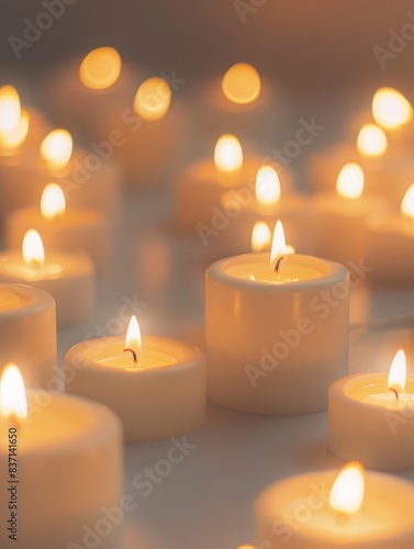 Serene white candles with decorative holders and gentle glow.