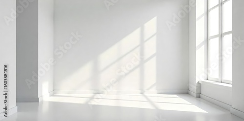 Serene White Room Minimalist Interior Bathed in Soft Natural Light, Conveying Purity, Calm, and New Beginnings. Ideal for Cleanliness, Simplicity, and Hygiene Concepts.