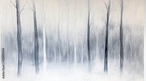 Serene Winter Forest Abstract: Minimalist Landscape in Gradient Whites and Grays with Subtle Tree Shapes
